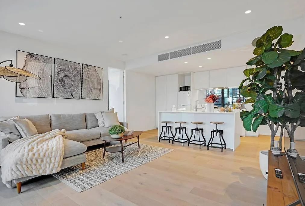 The apartment is sited in Melbourne CBD with a diverse range of restaurants, designer fashion boutiques, cafe-filled laneways, bars, galleries and spacious parks, approximately 6 minutes' walk from South Melbourne Market and a super close walk to Coles South Melbourne. Eureka Skydeck Tower is within 15 minutes' walk of the property in Melbourne. SEA LIFE Melbourne Aquarium is also situated within a minutes' drive from this 2-bedroom apartment.